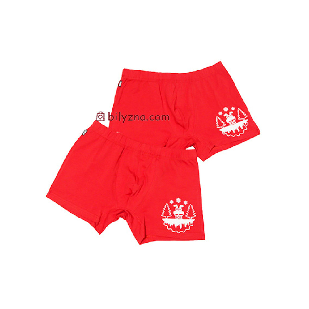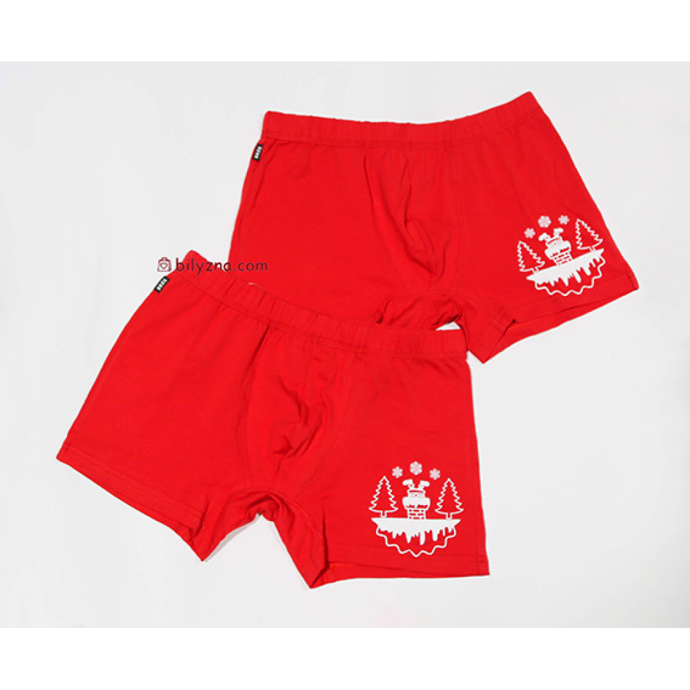 Набір складається з двох пар боксерів насиченого яскраво-червоного кольору, який асоціюється зі святами та пристрастю. Вишуканий білий новорічний принт із зображенням димаря з ялинками додає грайливого, але стильного акценту, ідеального для створення святкового настрою.