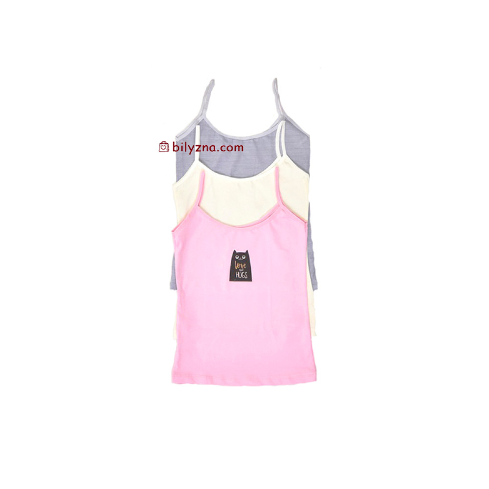 Шукаєте найм’якший перший шар одягу для своєї донечки? Наш набір із трьох маєчок на тонких бретелях створений, щоб дарувати затишок і турботу щодня. Пастельні кольори, милий принт із котиком та бездоганна якість роблять цей комплект фаворитом серед турботливих мам.